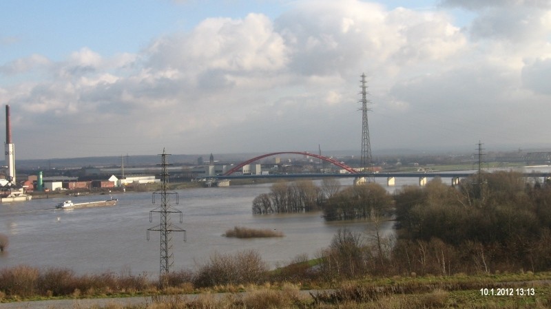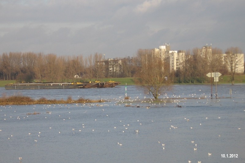 Der Rhein "erholt" sich mächtig in der 1. Januarwoche 2012 und flutet bereits die Wiesen bis an den Deich.