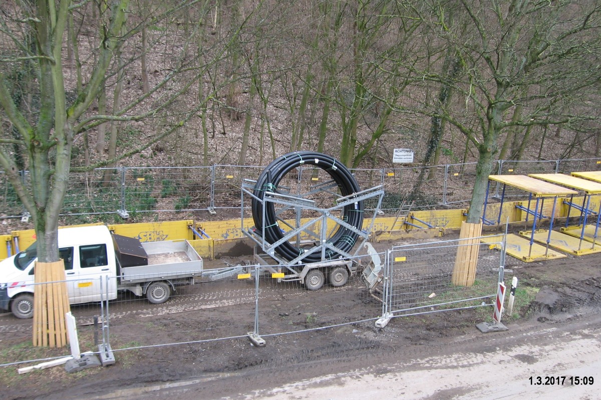 ..................................... Seit dem 09.02.2017 ist die Hauptbaustelle -sehr lärmintensiv- an unserem Haus vorbei "gewandert" und die Fernwärmerohre werden nun verschweißt. Allerdings ist die Deichstraße nun fast in ihrer ganzen Länge eine Einbahnstraße geworden (von der Homberger Straße bis zur Werthauser Straße) und es gilt tagsüber rechts und links ein Halteverbot.